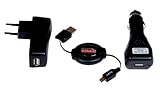 ✚✚✚ Just Mobile Kit de Chargement 3 en 1 GRJMCK02 pour PDA chargeur secteur USB + chargeur allume cigare USB + câble rétractable USB mini